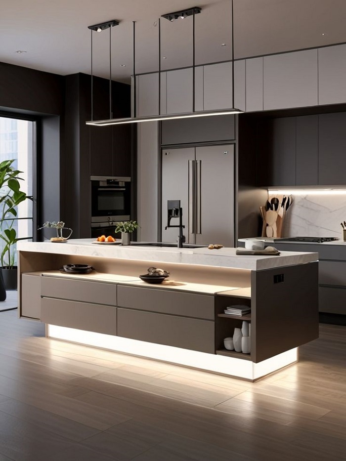 В небольших квартирах каждый сантиметр имеет значение. Мы используем встроенную мебель и модульные системы хранения, которые позволяют максимально эффективно задействовать пространство. Гладкие фасады, отсутствие видимой фурнитуры и скрытые механизмы создают ощущение порядка и визуальной свободы.